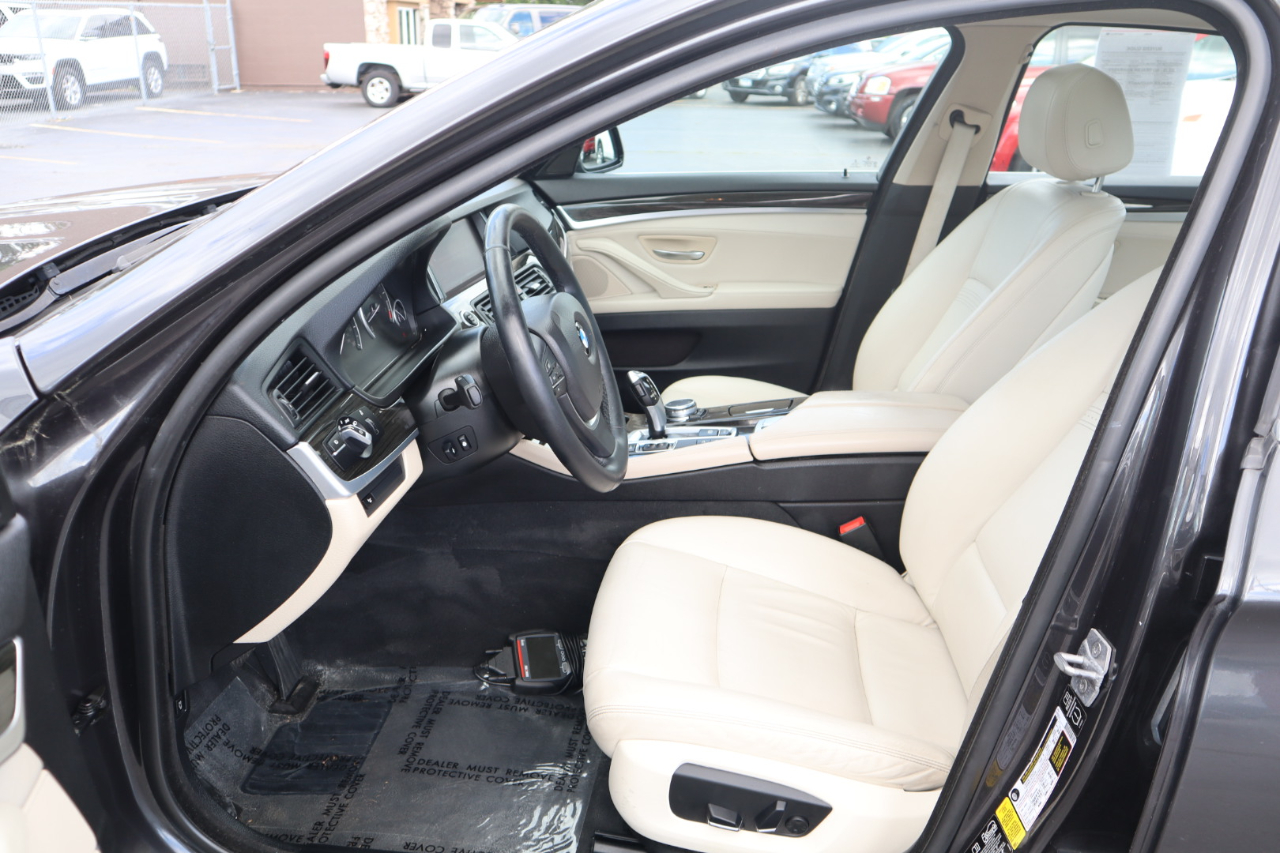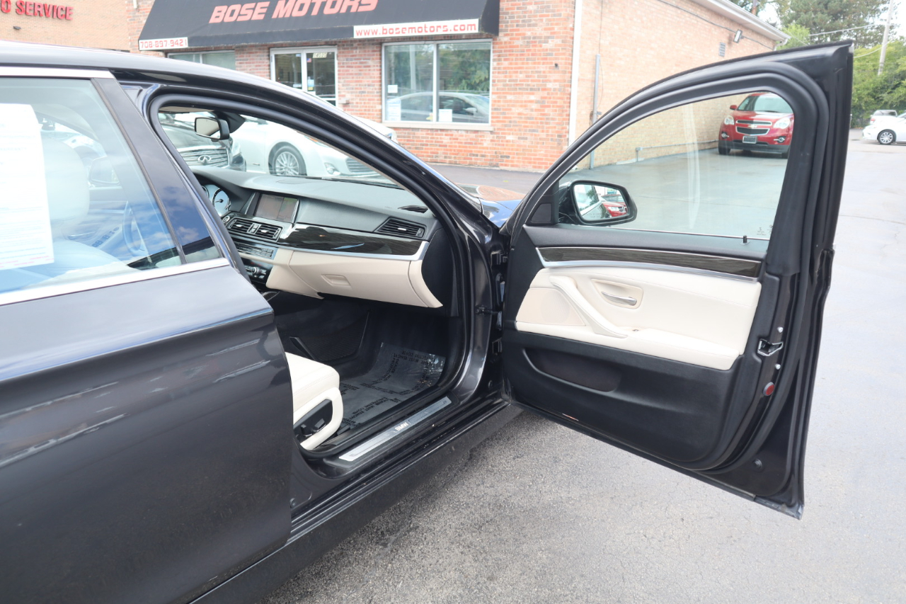 Clean CARFAX. Dark Graphite Metallic 2015 BMW 5 Series 535i xDrive AWD 8-Speed Automatic 3.0L I6 DOHC 24V TwinPower Turbo AWD, Ivory White w/Black Dashboard w/Nappa Leather Upholstery.
