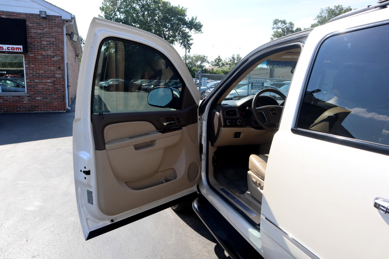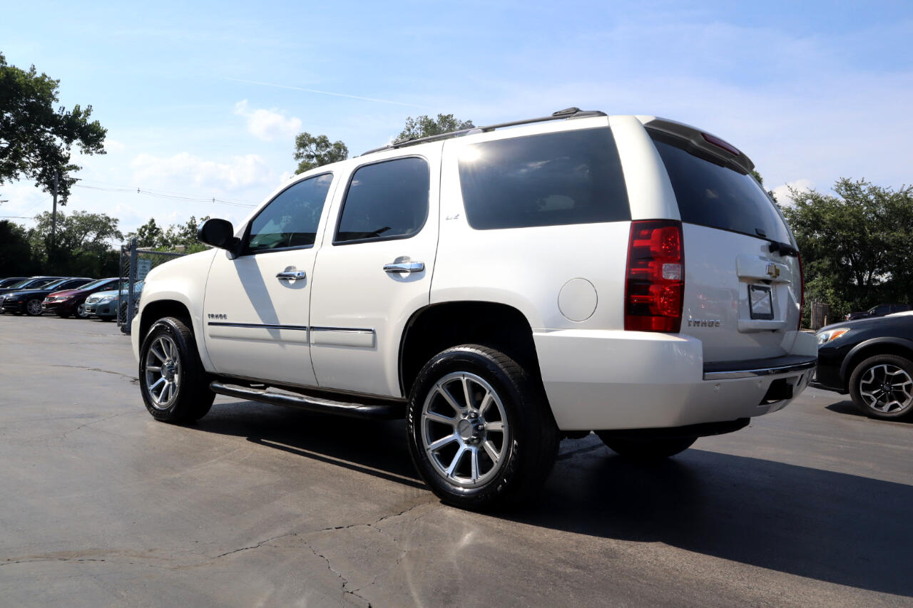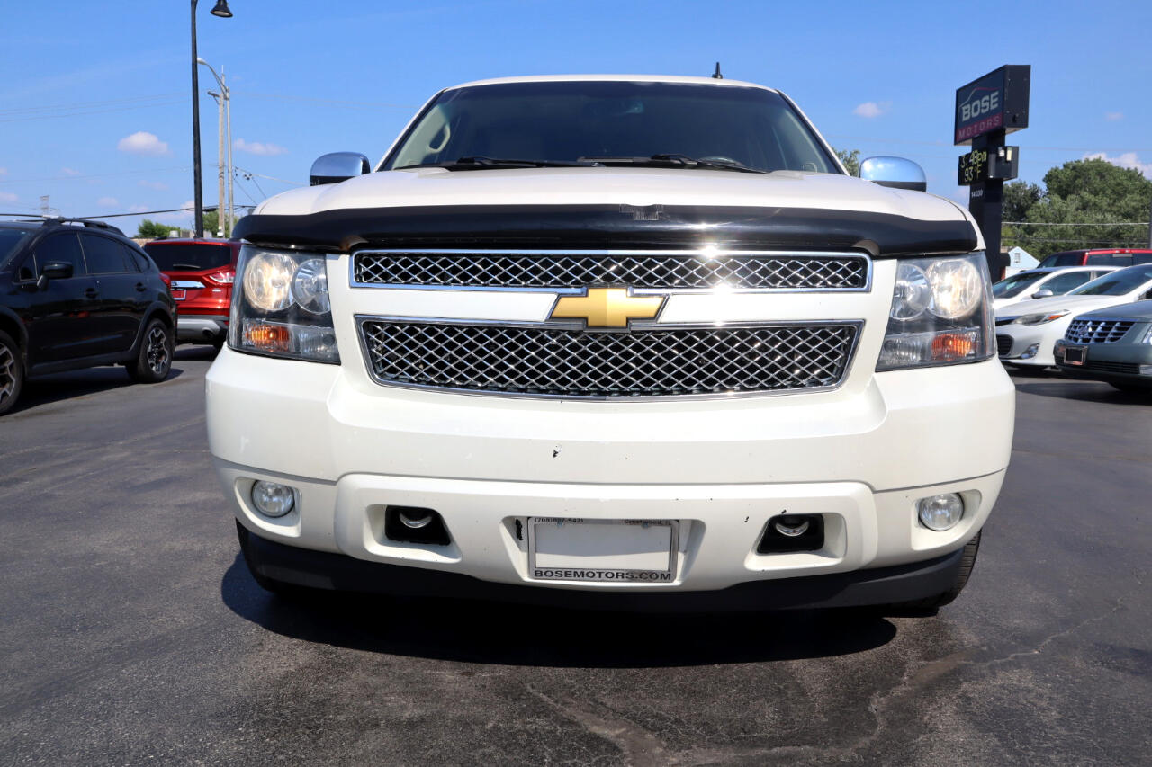 Priced below KBB Fair Purchase Price! White Diamond Tricoat 2014 Chevrolet Tahoe LTZ 4WD 6-Speed Automatic Electronic with Overdrive Vortec 5.3L V8 SFI Flex Fuel Iron Block 4WD, Light Cashmere/Dark Cashmere Leather.