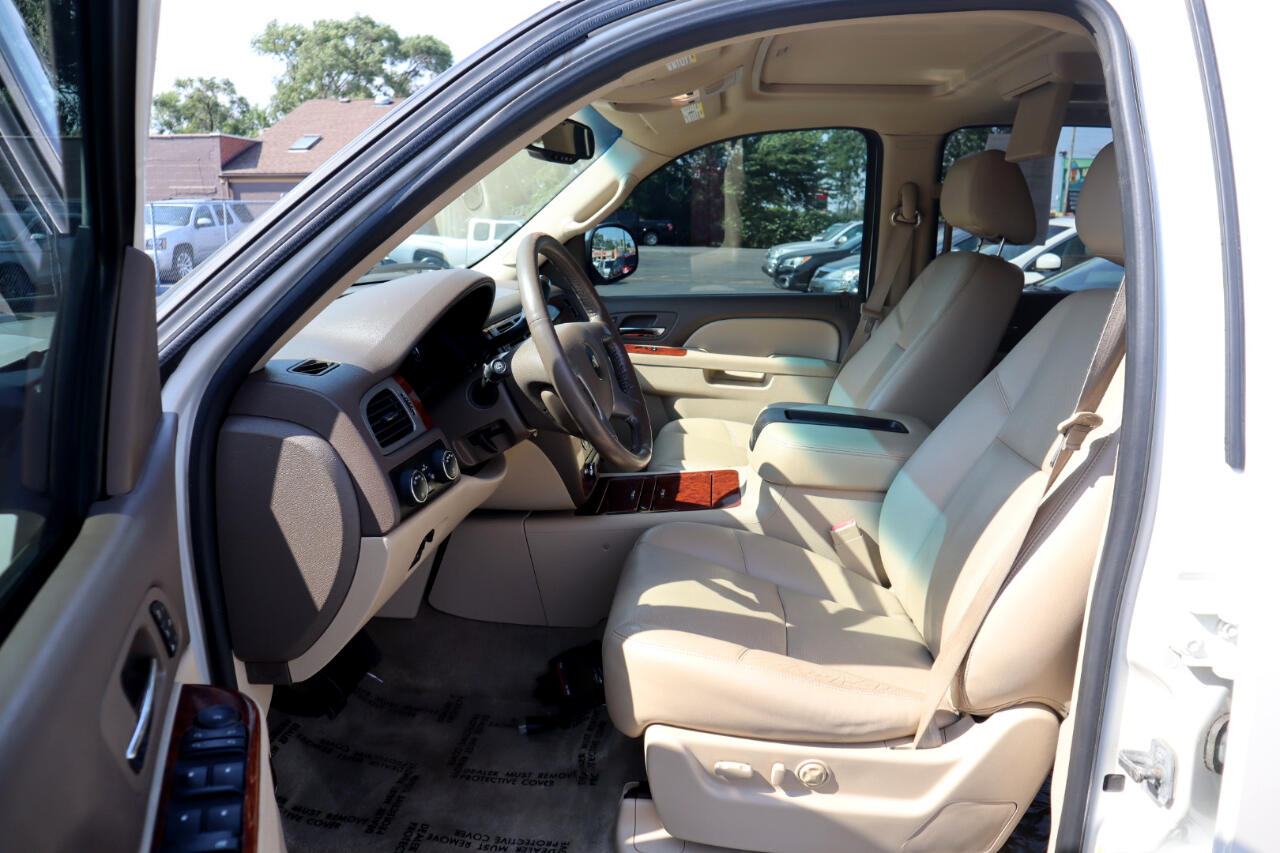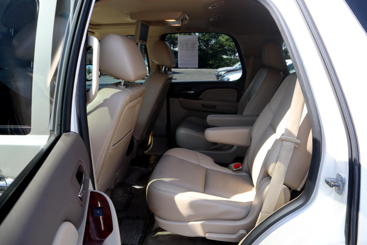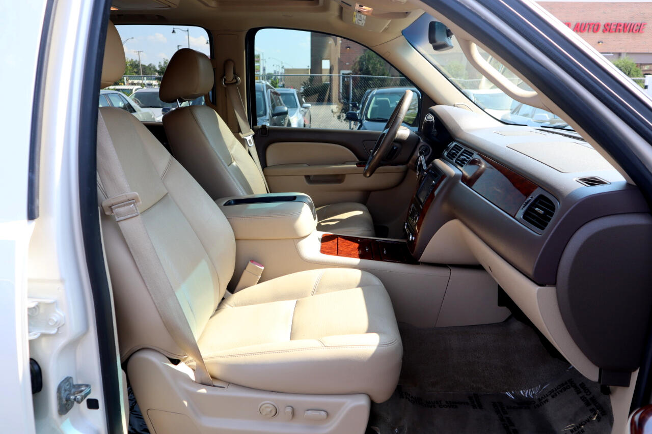 Priced below KBB Fair Purchase Price! White Diamond Tricoat 2014 Chevrolet Tahoe LTZ 4WD 6-Speed Automatic Electronic with Overdrive Vortec 5.3L V8 SFI Flex Fuel Iron Block 4WD, Light Cashmere/Dark Cashmere Leather.